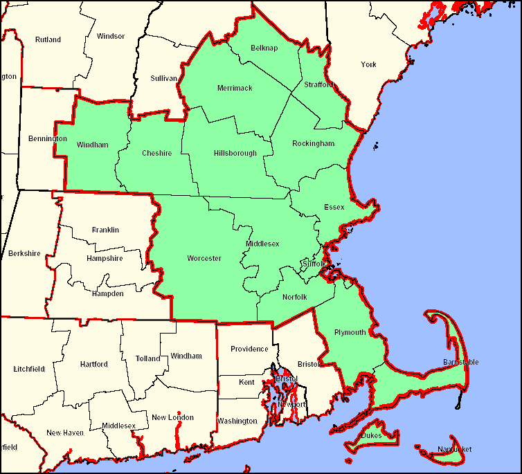 Counties in GREEN = Boston DMA